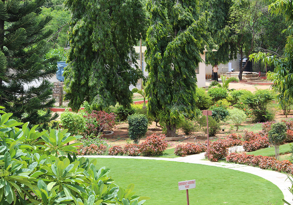 A significant area of our campus is devoted to gardening and tree plantation. Our rainwater harvesting system collects over 60% of the surface runoff from our campus to replenish the water table.